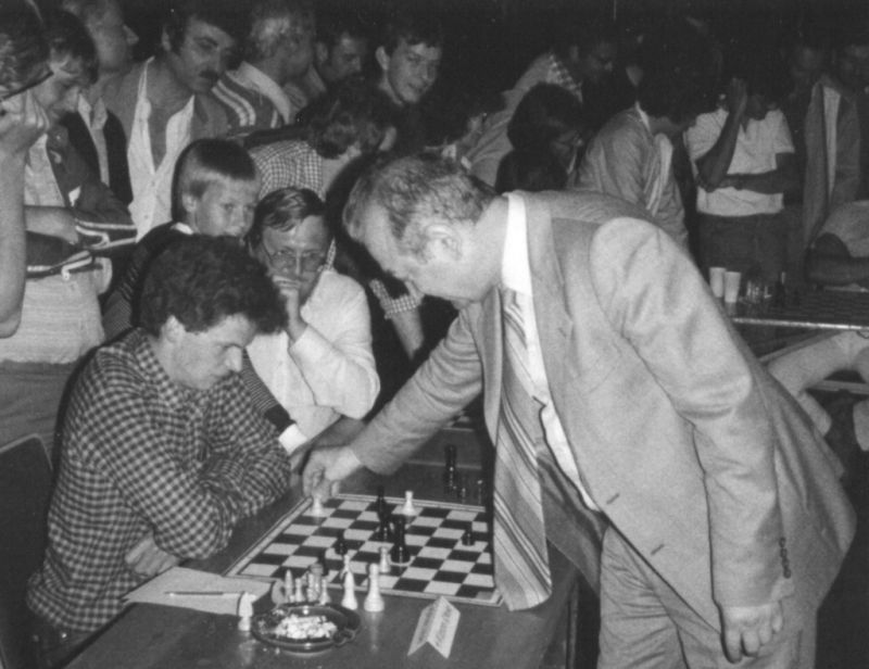 Rudi Widmann beim Simultanschach in Friedrichshafen gegen Großmeister
